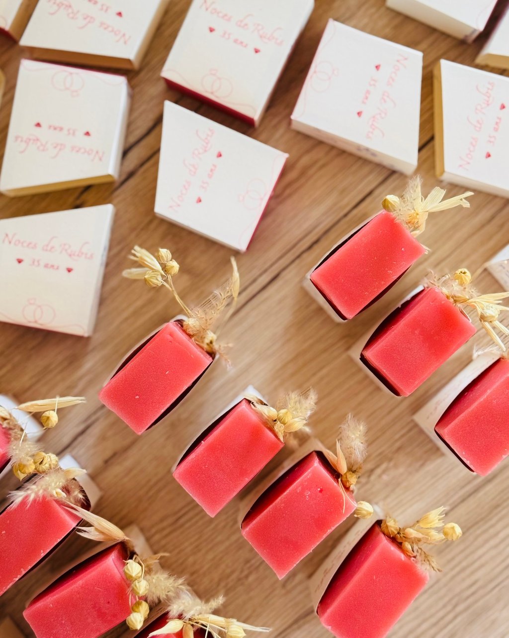 Nous avons été conquis par nos savons personnalisés pour notre mariage. Ils ont ajouté une touche unique à notre journée spéciale et nos invités les ont adorés ! Devis et envoi rapide, nous recommandons les yeux fermés.