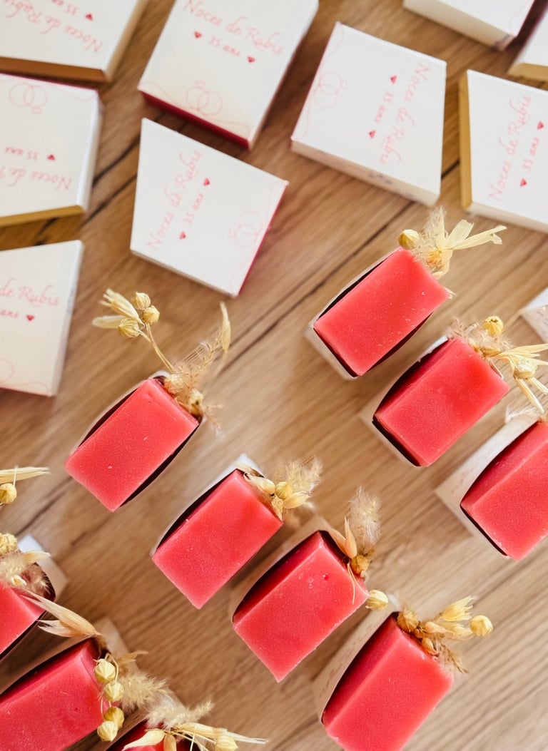 Nous avons été conquis par nos savons personnalisés pour notre mariage. Ils ont ajouté une touche unique à notre journée spéciale et nos invités les ont adorés ! Devis et envoi rapide, nous recommandons les yeux fermés.